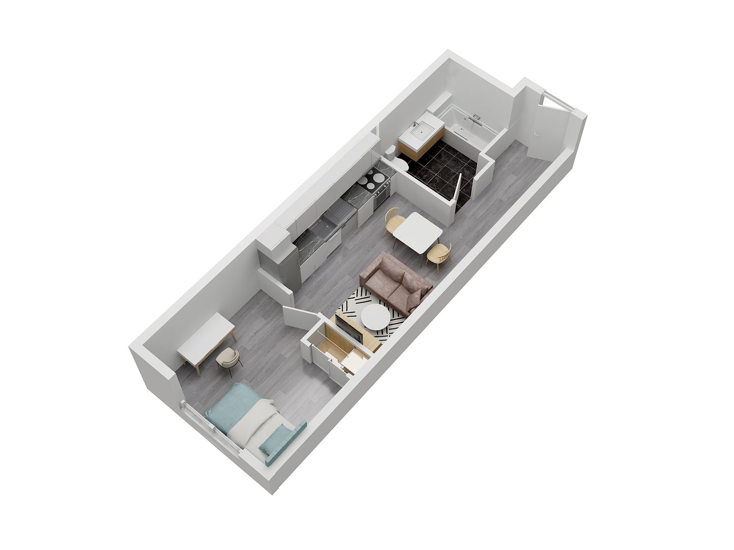 Our one- to four-bedroom residences blend style and convenience, offering fully furnished kitchens with brand-new appliances, in-unit washer/dryers, and central air for year-round comfort.