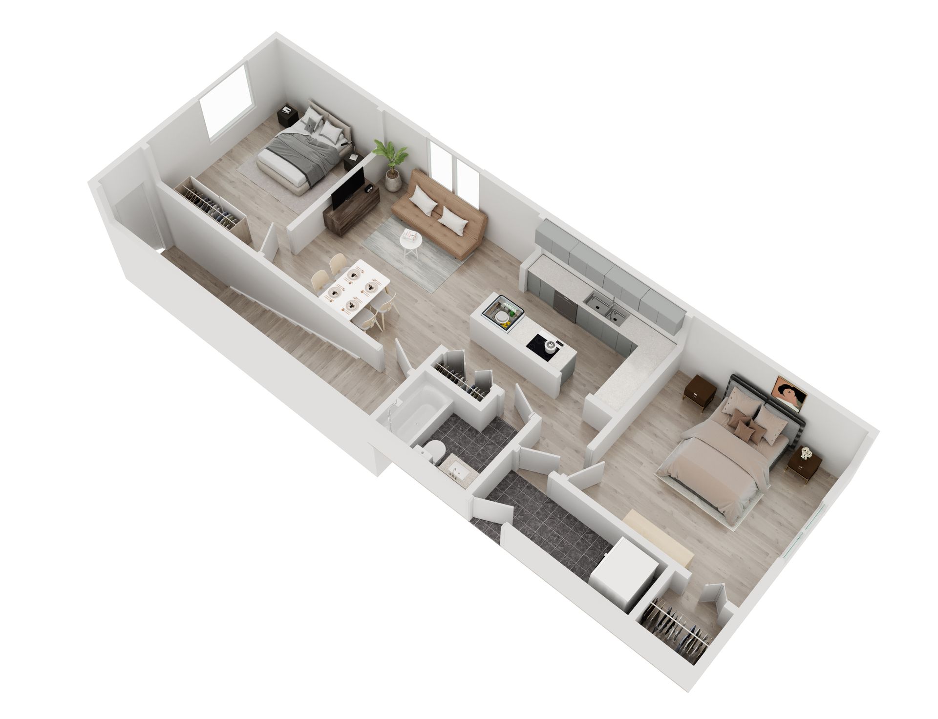 Welcome to the New Hampshire Apartments! These lovely 2 bed 1 bathroom apartments are great for 2-4 people. Each unit comes with kitchen appliances, AC/heating, and an in-unit washer and dryer. You’ll have access to private parking spaces and a beautiful front yard! Best of all, this property is in an amazing location with a short drive to Koreatown, Hollywood studios AND downtown LA!