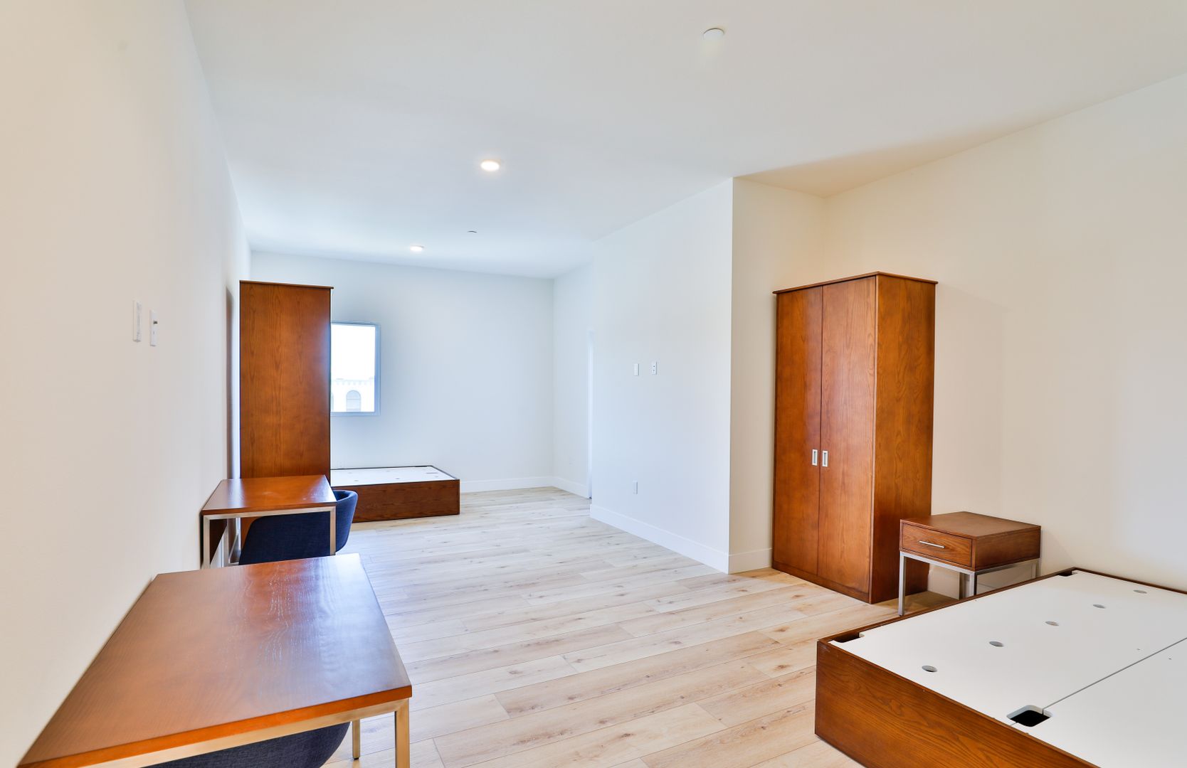 Welcome to Draco Apartments! This brand new beautiful property has a great kitchen/living space that comes fully furnished with hotel grade furniture. Not only do you live across the street from campus, but you also get a full bed, desk, nightstand, wardrobe/closet, and a huge room to be shared with just one other person! Plus, these huge rooms all have their own ensuite bathroom! Leases are even available by the bed space! Best of all, we have TWO sky decks that offer phenomenal views of Los Angeles all the way to the Hollywood sign!